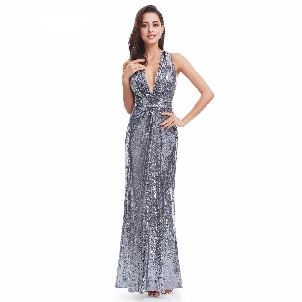 Deep V-Neck  Sequin Evening Gown - Gownclap