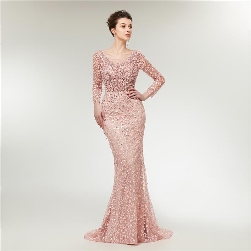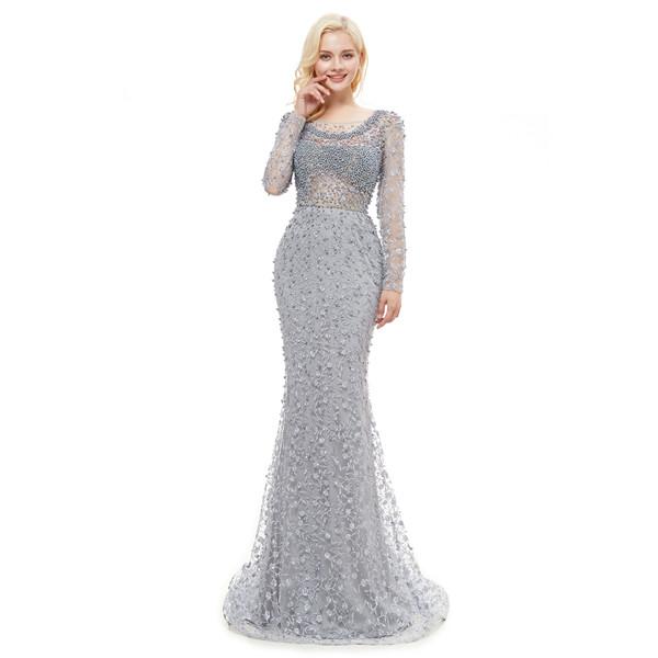 Mermaid Lace Pearls Prom Dress - Gownclap