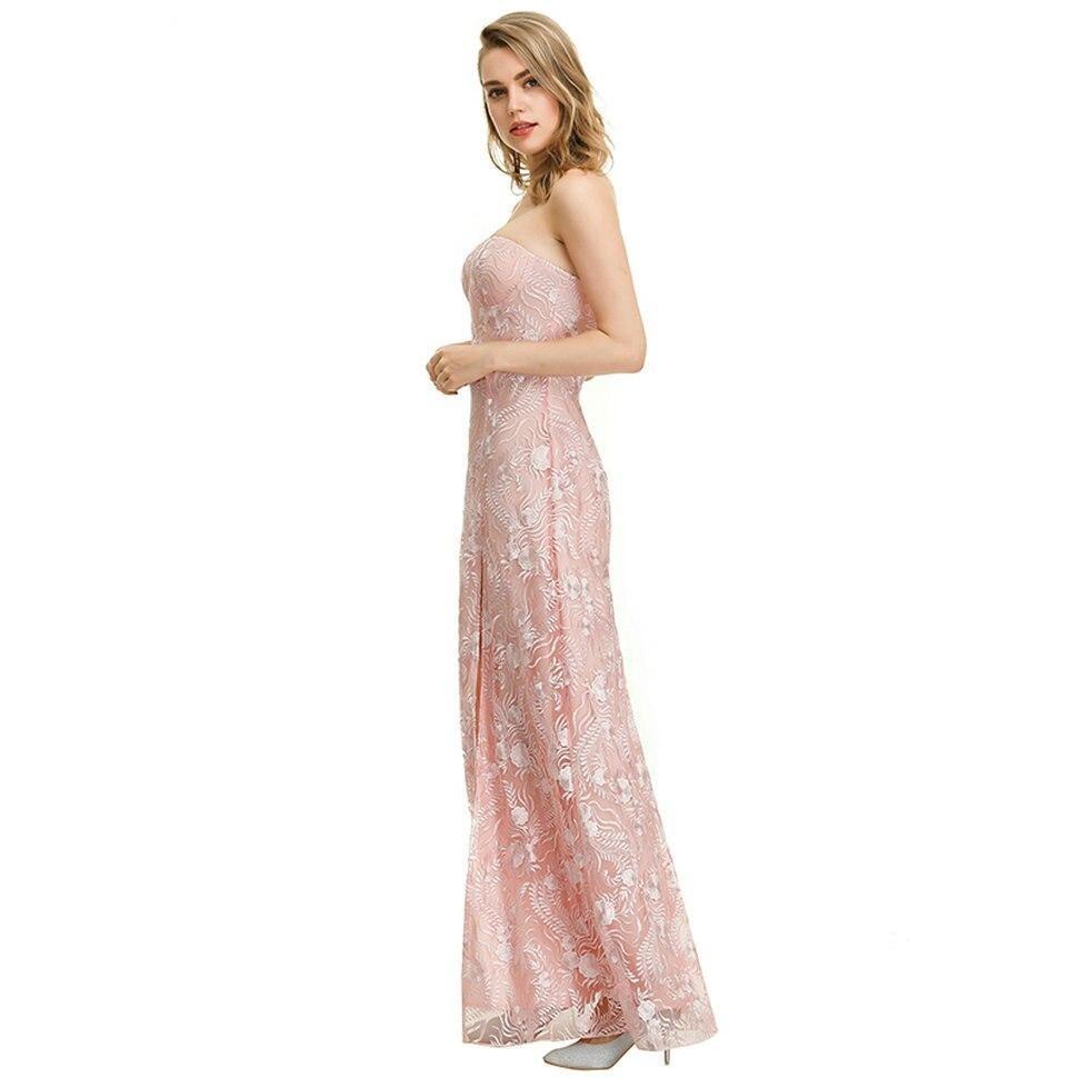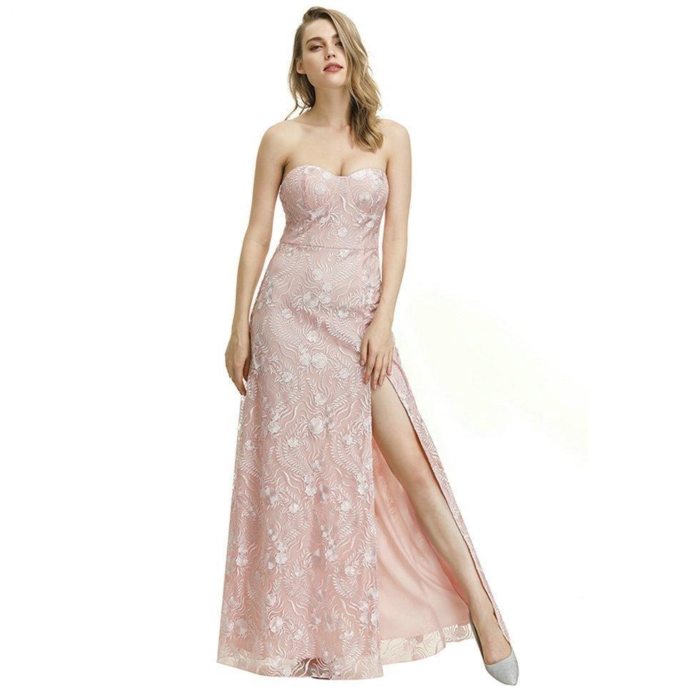 This retro Sexy Pink Side Slit A-Line Evening Gown features a scoop off-shoulder through neckline with a beautiful cut, sheer front and sweetheart detail, tight slit floral lace design.